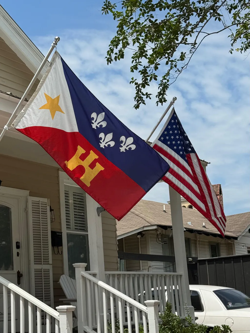 The Acadian flag is also known as the Louisiana Acadian Flag, Cajun Flag, Acadian Regional Flag, City of Lafayette Flag and the flag of Lafayette Louisiana. This exterior flag is used in and around Lafayette, Louisiana.